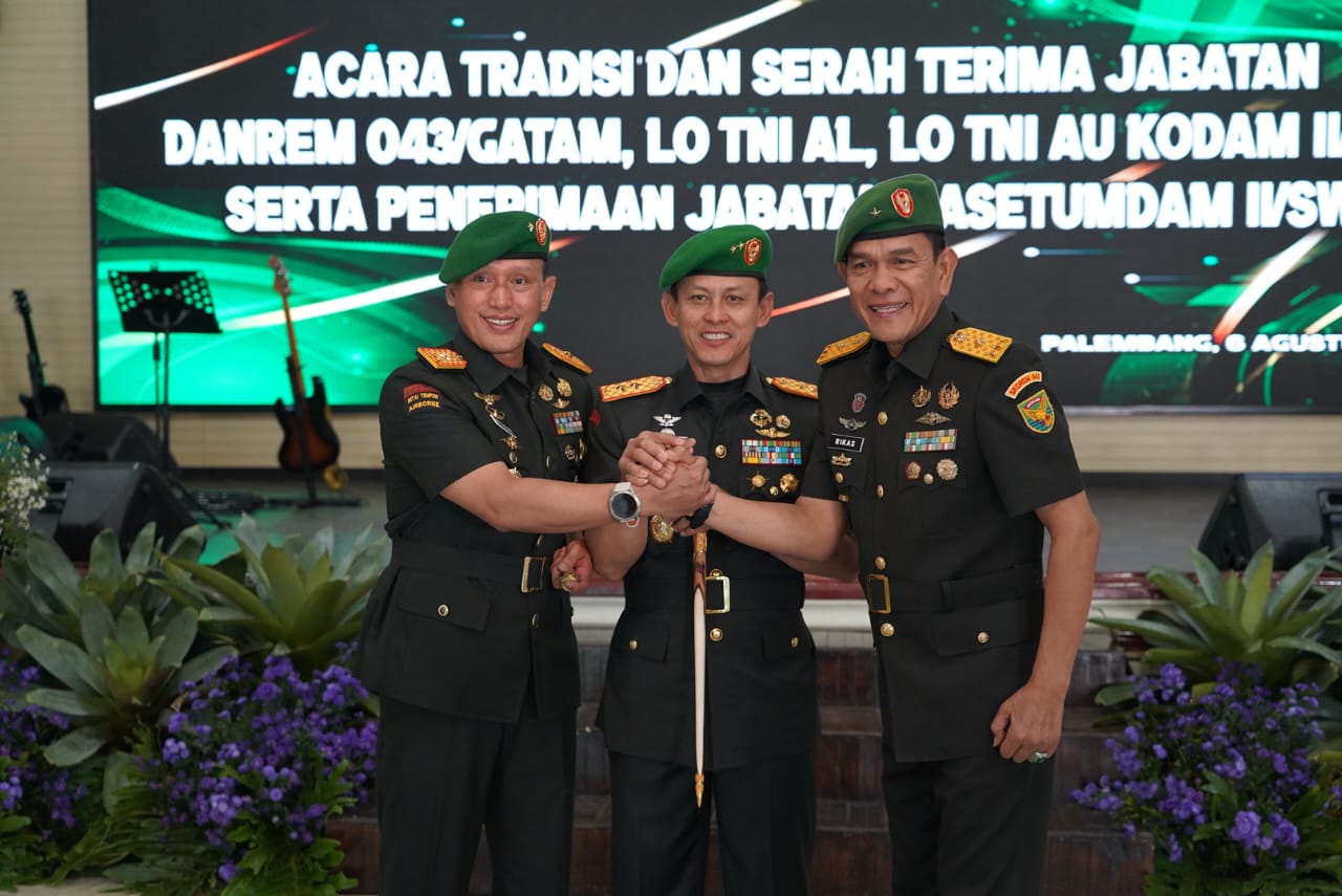 Selain Sertijab Danrem 043/Gatam, acara ini juga dirangkaikan dengan serah terima jabatan Liaison Officer (LO) TNI AL Kodam II/Swj, LO TNI AU Kodam II/Swj, serta penerimaan jabatan Kepala Setumdam II/Swj Tahun 2025.