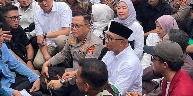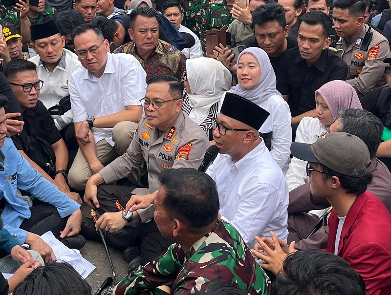 Didampingi Kapolda Lampung Irjen Pol Helmy Santika serta Pangdam II/Sriwijaya Mayjen TNI Kristomei Sianturi dan Ketua DPRD Lampung, Ahmad Giri Akbar. Gubernur Mirza mendengarkan secara langsung sepuluh tuntutan yang dibacakan mahasiswa.