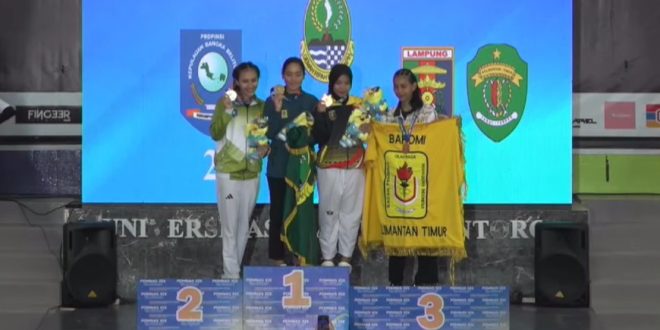 SEMARANG (sundalanews.com) – Taekwondoin Putri Institut Informatika dan Bisnis (IIB) Darmajaya Faura Cahayana Putri yang turun dalam Kelas under 67 Kg Kyorugi Putri berhasil mempersembahkan medali perunggu untuk Provinsi Lampung dalam ajang Pekan Olahraga Mahasiswa Nasional (Pomnas) XIX di GOR Udinus Satria Sport Centre (USSC) Semarang, Jawa Tengah pada Selasa, (23/9/25).
