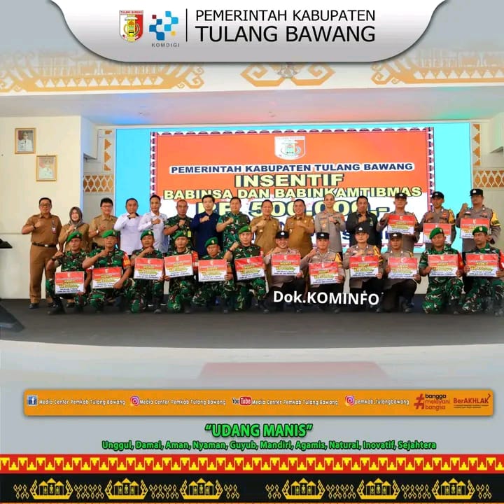 Sementara itu, Bupati Tulang Bawang Drs. Qudrotul Ikhwan, MM, menekankan bahwa keberadaan Babinsa dan Bhabinkamtibmas harus menjadi teladan sekaligus pengayom masyarakat. Ia menegaskan pentingnya kekompakan tiga pilar desa—Babinsa, Bhabinkamtibmas, dan Kepala Kampung—sebagai pondasi utama bagi keamanan dan pembangunan.