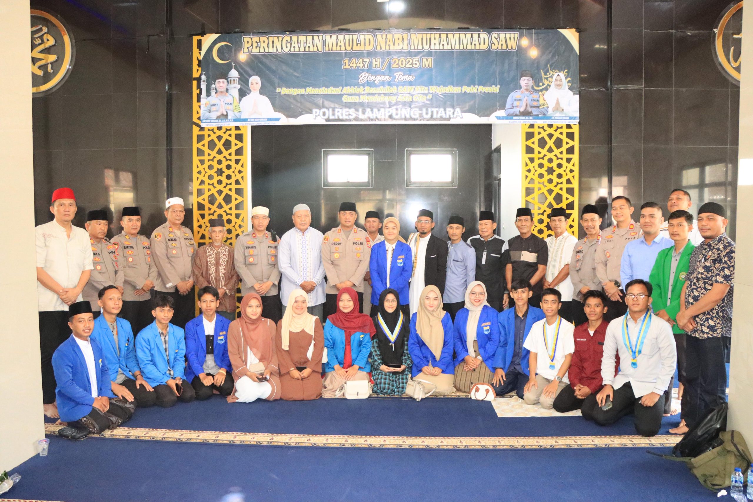 Lampung Utara (sundalanews.com) – Polres Lampung Utara Melaksanakan kegiatan Peringatan Maulid Nabi Muhammad SAW dan Pengajian Istighosah Bersama Persatuan Mahasiswa Islam Indonesia (PMII) Kabupaten Lampung Utara di Masjid Al- Fachri Polres setempat, Kamis (4/9/25).