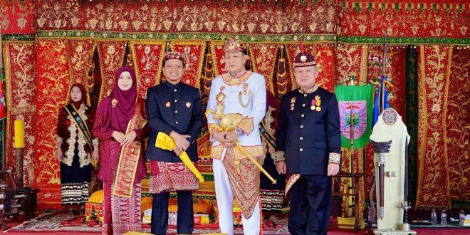 Prosesi penabalan dipimpin langsung oleh Paduka Yang Mulia Saibatin Puniakan Dalom Beliau (PYM SPDB) Hi.Pangeran Edward Syah Pernong, Sultan Sekala Brak Yang Dipertuan Ke-23, pada gelar adat Angkon Muwakhi di Pendopo Kabupaten Pringsewu, Rabu (8/10/2025).