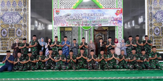 Lampung (sundalanews.com) – Dalam rangka memperingati Hari Ulang Tahun (HUT) ke-80 Tentara Nasional Indonesia (TNI), Komando Daerah Militer XXI/Radin Inten (Kodam XXI/RI) menggelar doa bersama di Masjid Al-Ikhlas Makodam XXI/RI, Jl. Teuku Umar, Penengahan, Bandar Lampung, Sabtu (4/10/2025).