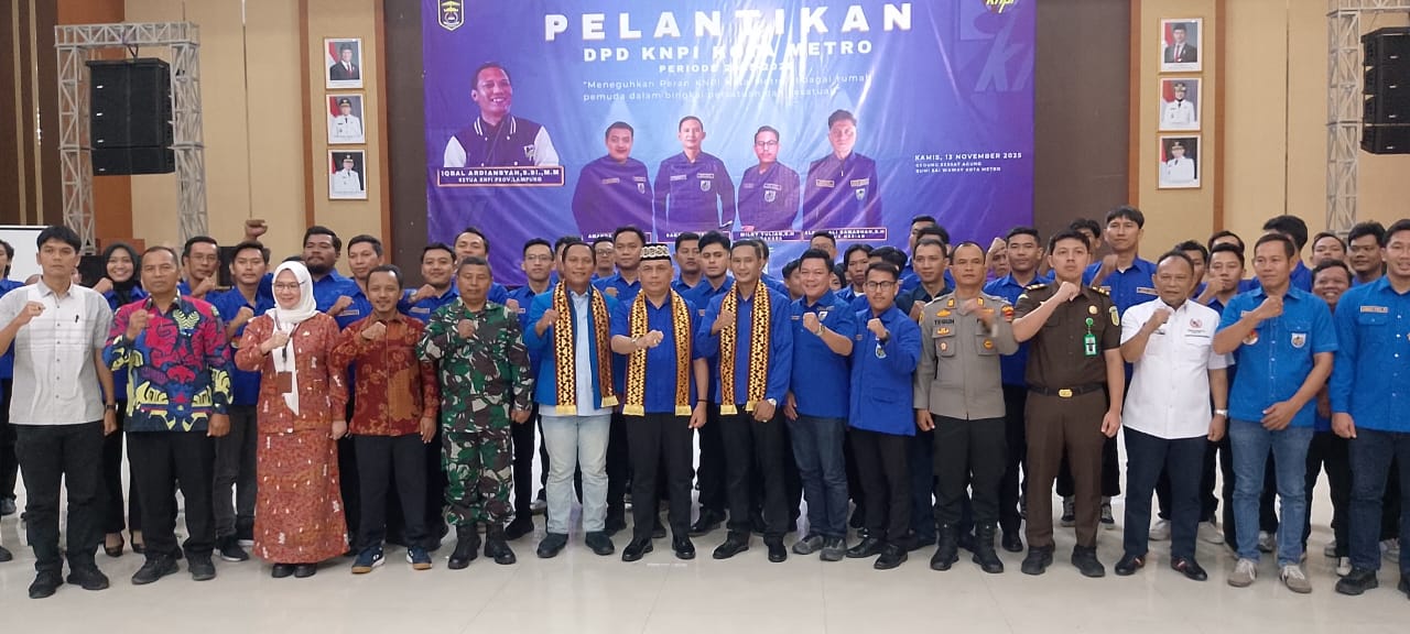 METRO (sundalanews.com) – Ratusan pemuda dari berbagai organisasi kepemudaan di Kota Metro resmi dilantik sebagai pengurus DPD Komite Nasional Pemuda Indonesia (KNPI) Kota Metro masa bakti 2025–2028. Pelantikan berlangsung di Gedung Sessat Agung Bumi Sai Wawai (GSA-BSW), Kamis (13/11/2025).