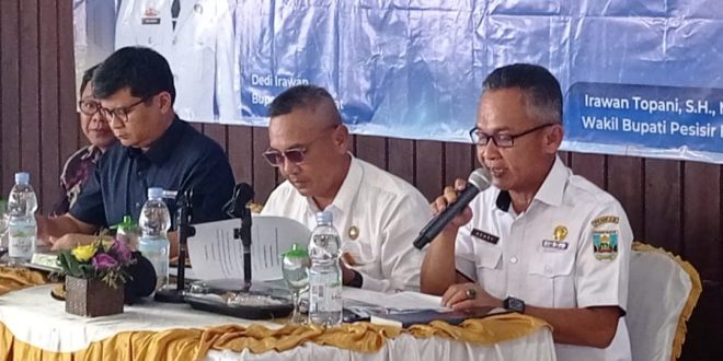 Kegiatan yang berlangsung di Aula Hotel Sunset Beach, Kecamatan Pesisir Tengah, itu dirangkaikan dengan sosialisasi digitalisasi keuangan daerah.