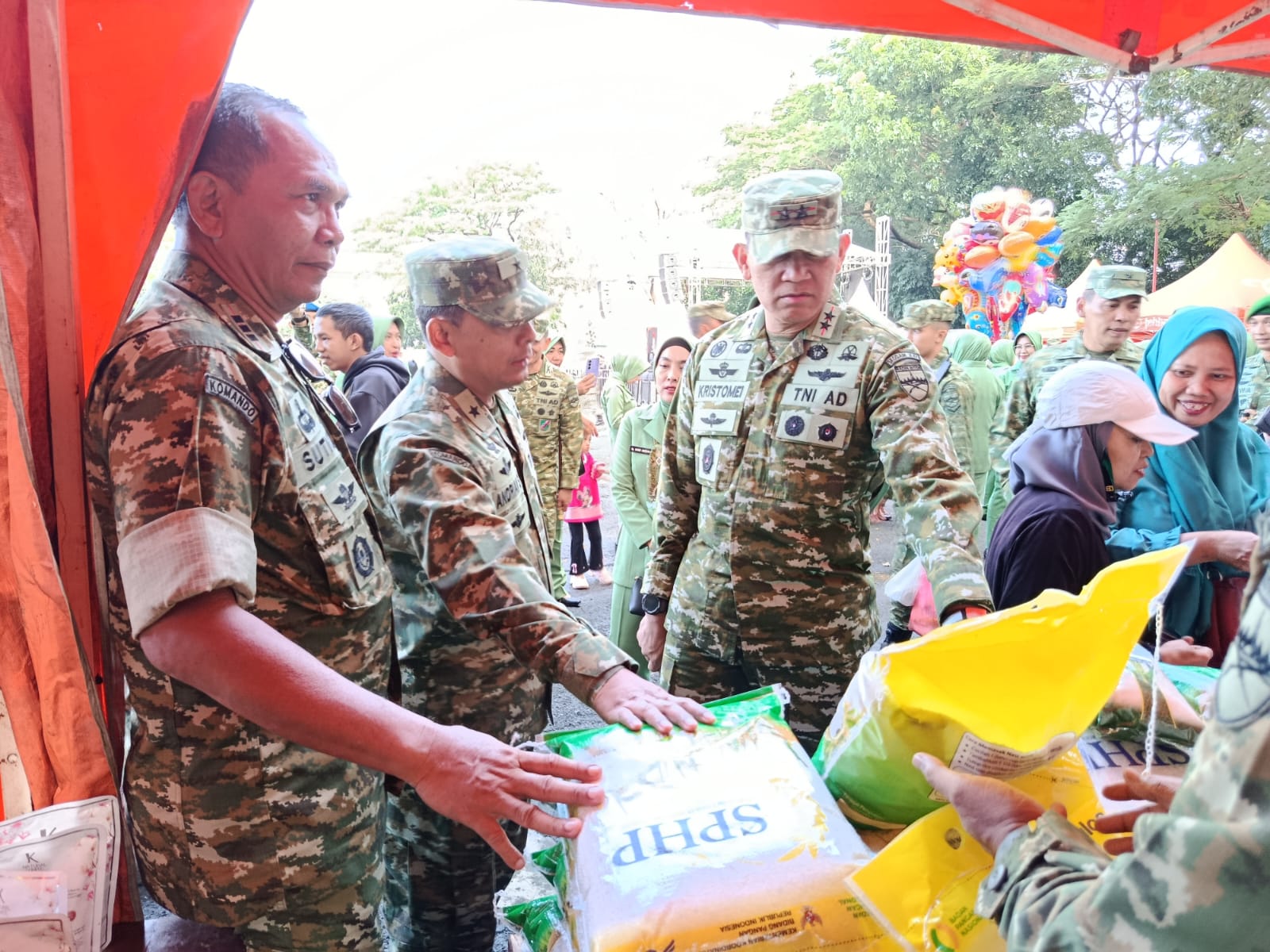 Pantauan di lokasi membuktikan, di saat stan-stan lain hanya menunggu pengunjung datang, para Babinsa justru bergerak massif menyusuri kerumunan. Dengan semangat khas kewilayahan, mereka tak kenal lelah menggaet warga untuk berbelanja di stan kebanggaan Korps Baret Hijau tersebut.