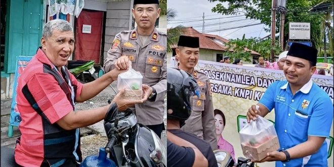 Namlea (Sundalanews.com) – Semangat kebersamaan di bulan suci Ramadan kembali ditunjukkan oleh KNPI Kabupaten Buru bersama jajaran Polsek Namlea dengan menggelar kegiatan pembagian ratusan takjil dan buka puasa bersama di halaman Mapolsek Namlea, Sabtu (28/2/2026).