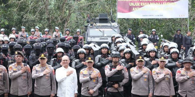Bandar Lampung (sundalanews.com) — Polda Lampung melaksanakan kegiatan simulasi rayonisasi polres dan penanganan unjuk rasa di Sekolah Polisi Negara (SPN) Polda Lampung sebagai langkah antisipasi menghadapi peringatan Hari Buruh Internasional atau May Day 2026, Rabu (15/04/2026).