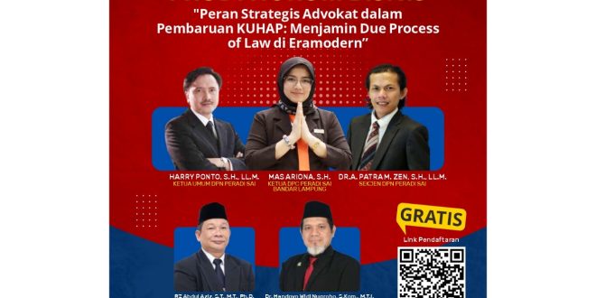 BANDAR LAMPUNG (sundalanews.com) – Institut Informatika dan Bisnis (IIB) Darmajaya kembali menunjukkan komitmennya dalam meningkatkan kualitas akademik dan kesadaran hukum mahasiswa melalui penyelenggaraan Kuliah Umum Nasional bertajuk “Peran Strategis Advokat dalam Pembaruan KUHAP: Menjamin Due Process of Law di Era Modern.”