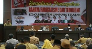 KALIANDA (sundalanews.com) – Dalam rangka pencegahan tindakan Radikalisme dan Terorisme di lingkungan Kabupaten Lampung Selatan, Pemerintah Kabupaten (Pemkab) menggelar sosialisasi pencegahan Paham Radikalisme dan Terorisme kepada para camat dan kepala Desa se-Kabupaten Lampung Selatan. Sosialisasi dibagi menjadi dua sesi yaitu sesi I diikuti sejumlah kecamatan yang berada wilayah timur dan …