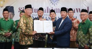 BANDAR LAMPUNG (sundalanews.com) – Gubernur Lampung Rahmat Mirzani Djausal menghadiri Silaturahmi Syawal 1446 H Pimpinan Wilayah (PW) Muhammadiyah Lampung sekaligus menyerahkan secara simbolis hibah tanah di kawasan Pusat Pemerintahan Kota Baru, di Hotel Soeltan Luxe, Bandarlampung, Sabtu (12/4/2025). Hibah tanah yang diserahkan tersebut seluas 90.000 m2 di Kecamatan Jati Agung, …