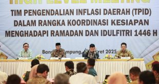 Bandar Lampung (sundalanews.com) – Memasuki Ramadan dan jelang Idulfitri 1446 H, Tim Pengendalian Inflasi Daerah (TPID) Provinsi Lampung berkomitmen untuk menjaga inflasi terkendali pada sasaran. “Kita semua perlu bergandeng tangan melakukan langkah-langkah pengendalian inflasi agar tidak terjadi masalah di tengah meningkatnya kebutuhan masyarakat,” disampaikan Gubernur Lampung, Rahmat Mirzani Djausal, S.T., …