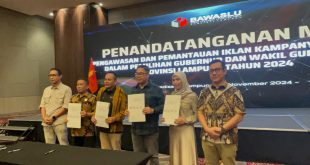 Bandar lampung (sundalanews.com) – Bawaslu Provinsi Lampung Gelar penandatanganan MOU Pelaksanaan kampanye Pilkada Serentak 2024 melalui media massa, baik cetak, elektronik, televisi, maupun radio, resmi dimulai pada Minggu 10 Oktober 2024 dan akan berlangsung selama empat belas hari hingga 23 November 2024. Ketua KPU Provinsi Lampung Erwan Bustami menyatakan bahwa …