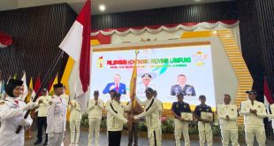 BANDAR LAMPUNG (sundalanews.com) – Pj. Gubernur Lampung Samsudin melepas keberangkatan atlet kontingen Lampung untuk berlaga dalam ajang Pekan Olahraga Nasional (PON) XXI Aceh-Sumatera Utara (Sumut) 2024 di Aula Mahan Agung, Rumah Dinas Gubernur Lampung, Bandarlampung, Kamis (29/8/2024). Pj. Gubernur Samsudin menargetkan Lampung meraih peringkat tujuh besar dan 35 medali emas …