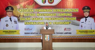 BANDAR LAMPUNG (sundalanews.com) – Wakil Gubernur Lampung Chusnunia Chalim (Nunik) membuka kegiatan Pembinaan Berkelanjutan kepada Masyarakat Lampung dalam Rangka Pencegahan Radikalisme dan Terorisme di Balai Penjaminan Mutu Pendidikan (BPMP) Lampung, Rabu (5/7/2023). Pada kesempatan itu, Wagubmengajak peran seluruh masyarakat Lampung untuk menjaga persatuan dan kesatuan bangsa serta keutuhan NKRI dari …