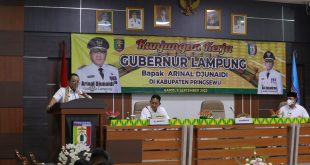 PRINGSEWU (sundalanews.com) – Gubernur Lampung Arinal Djunaidi mengajak camat dan kepala pekon serta jajaran pemerintahan bersinergi muwujudkan Rakyat Lampung Berjaya. Hal itu disampaikan Gubernur saat Kunjungan Kerja ke Kabupaten Pringsewu di Aula Kantor Bupati Pringsewu, Kamis (8/9/2022). “Mari terus bahu membahu berpartisipasi aktif untuk kemajuan Pringsewu dan Provinsi Lampung. Kita …
