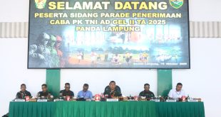 Lampung (sundalanews.com) – Kasdam XXI/Radin Inten, Brigjen TNI Andrian Susanto, S.I.P., M.Han., M.I.Pol., memimpin langsung Sidang Parade Penerimaan Calon Bintara (Caba) Prajurit Karier (PK) TNI AD Gelombang II TA 2025 Panda Lampung, yang digelar di Aula Sudirman Makodam XXI/Radin Inten, Jl. Teuku Umar, Penengahan, Bandar Lampung, Rabu (15/10/2025). Dalam sambutannya, …