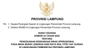 Lampung (sundalanews.com) – Menjelang libur Lebaran Idul Fitri Tahun 2026, Pemerintah Provinsi (Pemprov) Lampung menerbitkan dua Surat Edaran (SE) sebagai langkah memperkuat disiplin dan integritas aparatur negeri sipil. SE tersebut yakni tentang penggunaan kendaraan dinas operasional selama masa mudik Lebaran serta Surat Edaran juga soal pencegahan korupsi dalam hal ini …