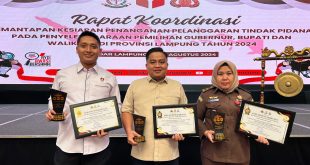 LAMPUNG TIMUR (sundalanews.com) – Polres Lampung Timur Polda Lampung menerima penghargaan dari Sentra Gakkumdu Provinsi Lampung pada Kamis(8/82024). Penghargaan itu diterima pada saat pelaksanaan kegiatan rapat koordinasi pemantapan kesiapan penanganan pelanggaran tindak pidana pada penyelenggaraan pemilihan gubernur, bupati dan walikota di provinsi lampung tahun 2024 di Ballroom Emersia Hotel, Bandar …