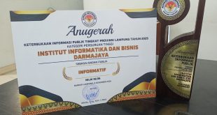 BANDAR LAMPUNG (sundalanews.com) – Institut Informatika dan Bisnis (IIB) Darmajaya kembali meraih predikat Informatif dari Komisi Informasi Provinsi Lampung pada tahun 2025, Senin (8/12/2025). Penghargaan kali kedua ini diterima langsung Wakil Rektor Bidang Non-akademik IIB Darmajaya Muprihan Thaib, S.Sos., M.M. Penghargaan Keterbukaan Informasi Publik ini menegaskan konsistensi kampus dalam menjalankan …