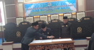 Pesisir Barat (sundalanews.com) – Wakil Ketua Dua Dewan Perwakilan Rakyat Daerah (DPRD) Kabupaten Pesisir Barat Aliyudiem,S.H memimpin Rapat paripurna Dewan Perwakilan Rakyat Daerah, dengan agenda penandatanganan berita acara persetujuan atas Rancangan Peraturan Daerah (Ranperda) Anggaran Pendapatan dan Belanja Daerah (APBD)-Perubahan Tahun Anggaran 2023, diruang paripurna DPRD setempat, Pesisir Barat, Lampumg, …