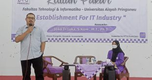 PRINGSEWU (sundalanews.com) – Dosen Pascasarjana Magister Teknik Informatika IIB Darmajaya Joko Triloka, S.Kom., M.T., Ph.D. menjadi narasumber dalam Kuliah Pakar dengan topik “Establishment for IT Industry” di Fakultas Teknologi & Informatika Universitas Aisyah Pringsewu (UAP), pada Sabtu, (11/2/23). Dalam sambutannya, Dekan Fakultas Teknologi & Informatika UAP, Agustinus Eko Setiawan, M.Kom. …