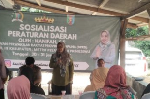 Pesawaran (sundalanews.com) – Hanifah anggota DPRD Provinsi Lampung menggelar sosialisasi peraturan daerah nomor 1 tahun …