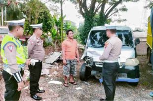 Pringsewu (sundalanews.com) – Akibat pecah ban sebuah kendaraan truk bernomor Polisi BG 8435 YC terguling …