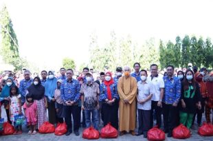 Walikota Eva Dwiana Hadiri Baksos Pembagian Sembako Rutin Oleh Pengurus Vihara Buddha Bhaisajyaguru Graha dan Yayasan Buddhayana Vidyalaya
