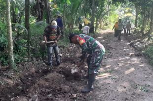 Babinsa Koramil 421-05/PDC Bersama Masyarakat Gotong Royong Membuat Saluran Air