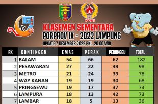 Read More »Bandar Lampung Pimpin Perolehan Medali Porprov IX Lampung