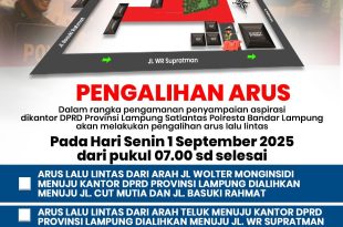 Lampung (sundalanews.com) – Satuan Lalu Lintas (Satlantas) Polresta Bandar Lampung akan memberlakukan pengalihan arus lalu …