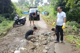 Way Kanan – Anggota DPRD Provinsi Lampung, Deni Ribowo, turun langsung bersama masyarakat memperbaiki jalan rusak parah di …